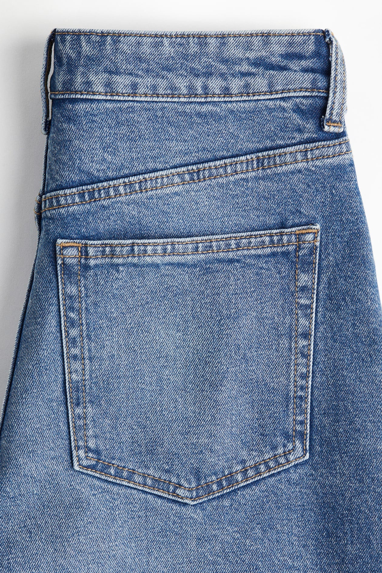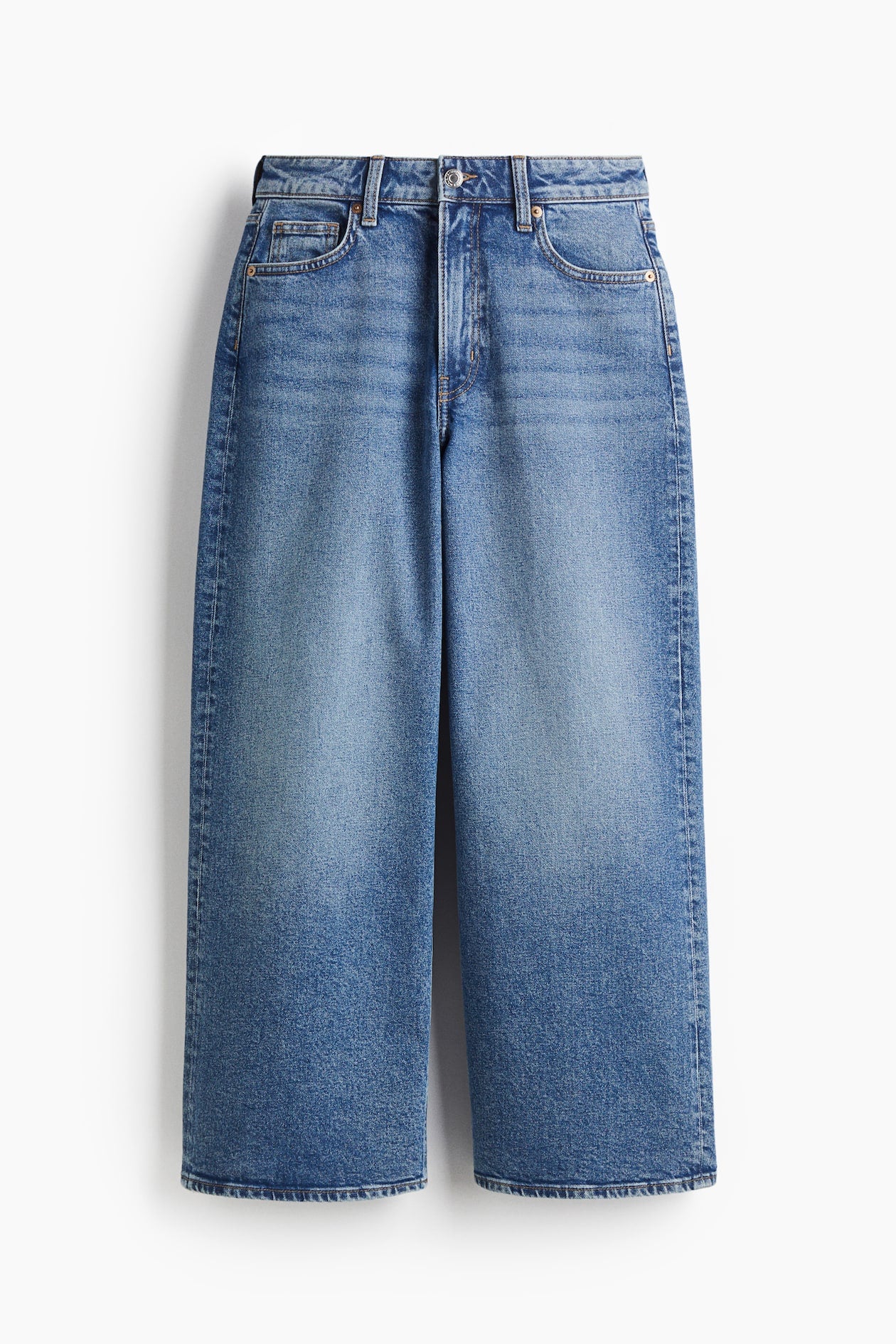 Vaquero tobillero de cinco bolsillos en denim de algodón ligeramente elástico. Modelo de talle alto con cierre de cremallera y botón, y perneras amplias.