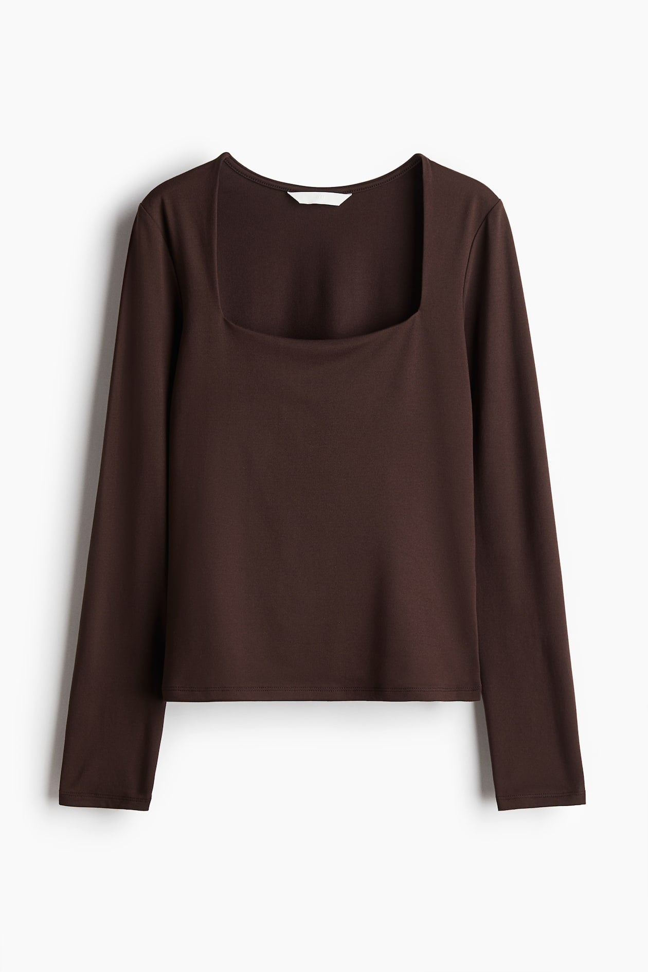 Top ajustado en jersey suave con escote cuadrado y largo