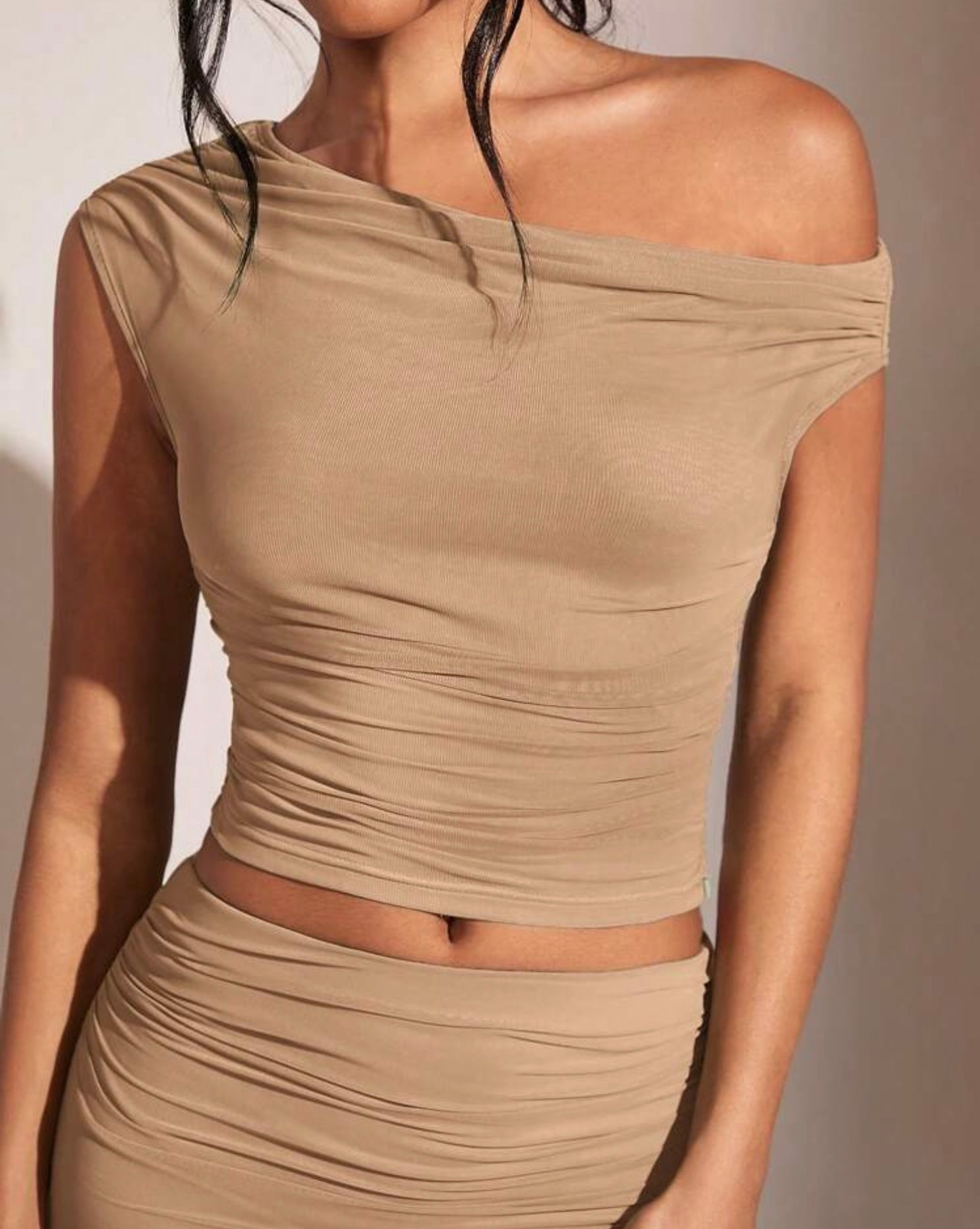 Conjunto de Falda lápiz para mujer con diseño de cuello y cintura asimétrico y de Unicolor