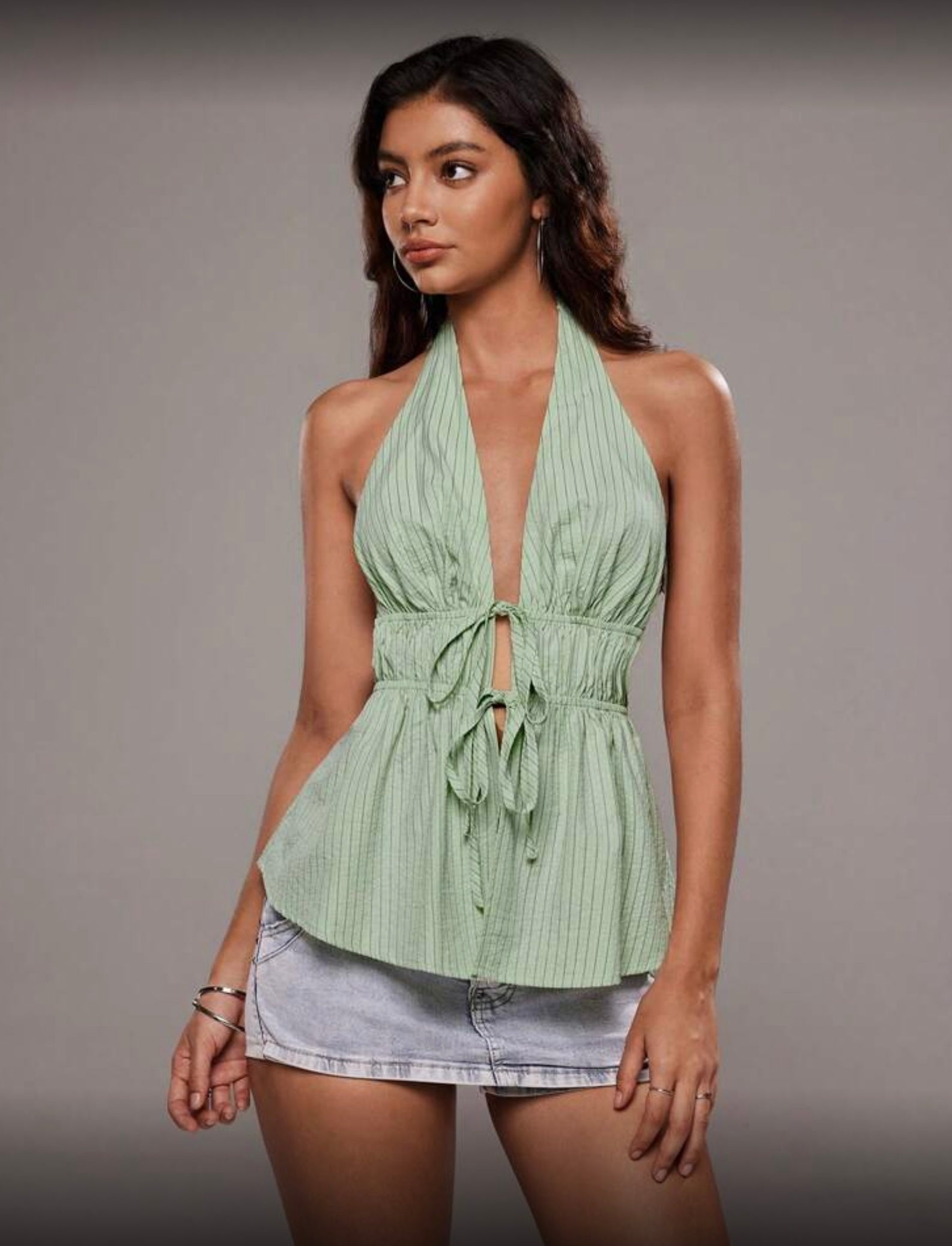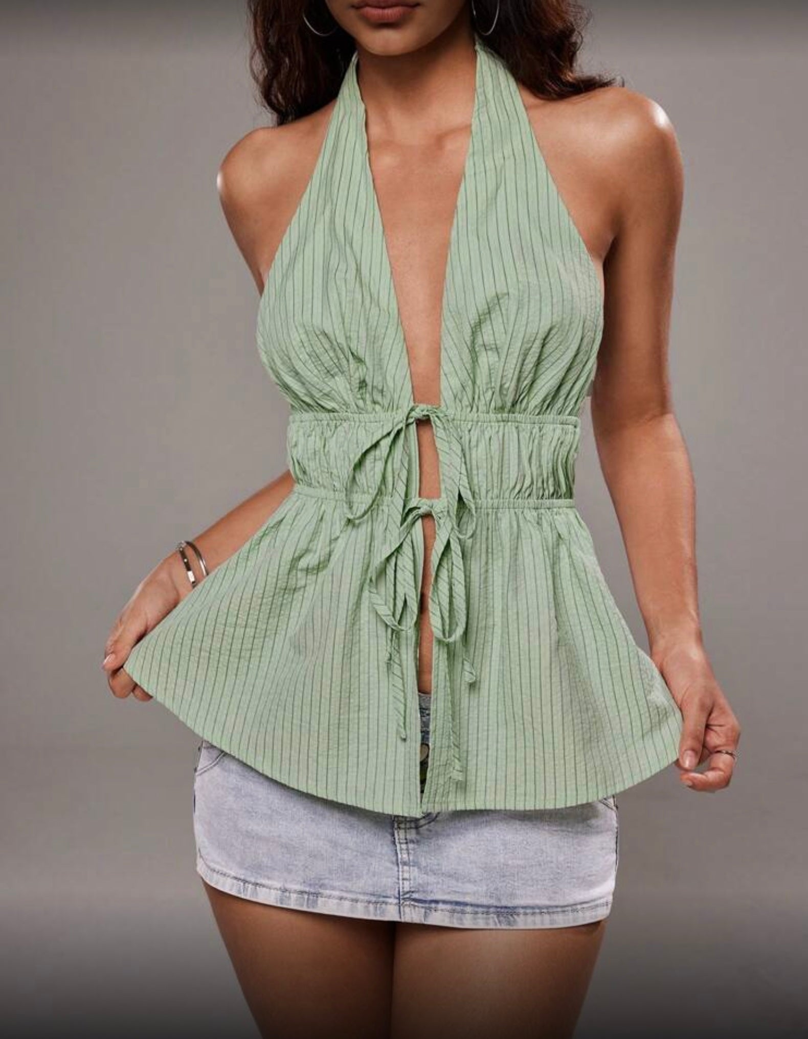 Top sin tirantes con corbata estilo rayas para mujeres, ideal para vacaciones
